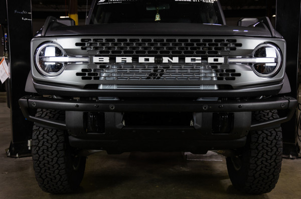 The Ford Bronco has a heritage of tough, go-anywhere capability. The 2021+ Bronco is no different and deserves a cooling system that can stand up to the task. Here at Mishimoto, we never back down from a challenge, so we developed a high-mount intercooler to let your 2.3L or 2.7L EcoBoost breathe the coolest, densest air possible to help improve performance and overall efficiency. We relocated this high-mount intercooler to the upper grille to allow greater clearance, improved entry and exit angle, and protect your intercooler from obstacles on the trail. This relocation also frees up your front bumper for winches and other essential off-road accessories. We've also included new ducting to ensure ample airflow through the intercooler in its new location. The Mishimoto High-mount Intercooler features a 3.1 inch-thick core with precision TIG-welded cast aluminum end tanks. Compared to the factory tube-and-fin intercooler, durability against heat, pressure, and debris on the road or trail is significantly improved.----More durability is always a good thing, but it’s even better when it’s backed by performance. This high-mount intercooler boasts an increase of 49-percent core volume and 93-percent external fin surface area, which results in a reduction of outlet temperatures by 21-degrees (2.3L EcoBoost) / 15.5-degrees (2.7L EcoBoost) over stock. Combined, this generates gains of 4.5 hp and 10.8 lb-ft of torque for the 2.3L EcoBoost and 8.0 hp and 10.2 lb-ft torque for the 2.7L EcoBoost. We saw exceptional improvement in our trail simulation heat-soak testing where, after 6 back-to-back dyno runs, we still saw outlet temperatures 20-degrees cooler than stock. Functionality of adaptive cruise control is retained utilizing a relocation bracket and 360-degrees cameras are unaffected. As with all our products the Mishimoto 2021+ Ford Bronco High-mount Intercooler is backed by our signature Mishimoto Lifetime Warranty.