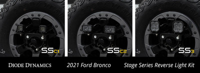 Overview. There's plenty of ways to add light behind your Bronco, but the new Stage Series Reverse Light Kit stands out with innovations in both function and ease of use. This kit includes an integrated red running light, and plug-and-play wiring harness, for trouble-free installation! Thanks to Stage Series TIR optic technology, this kit provides a huge amount of extra reverse light. The included harness allows you to toggle it on any time using your factory switches, or activate it automatically with your reverse lights, for a truly integrated solution.