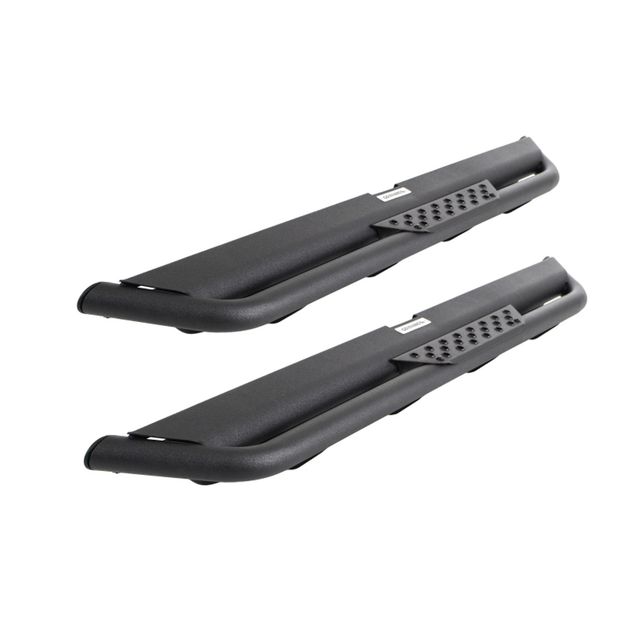 The Dominator Xtreme DT, or Dominator Tri-Tube, features a triple-bar design with full length outer and lower rub rails to give your vehicle a unique, aggressive appearance and increased protection for its body panels from trail obstacles and road debris. The main step platform is protected by a rugged outer rail that is buttressed underneath by the slider tube for additional strength. Two steel step plates with Go Rhino’s signature punched hex pattern offer a safe, no-slip grip. The step plates are removable for a minimal off-road look or paintable for customization. Installation is easy and the utilization of the OEM step locations means no drilling or cutting required. Hardware and brackets are included. The Dominator Xtreme DT Side Steps come with a Limited Lifetime warranty on materials and construction, and a 5-year warranty on the Textured Black powder coat finish.
